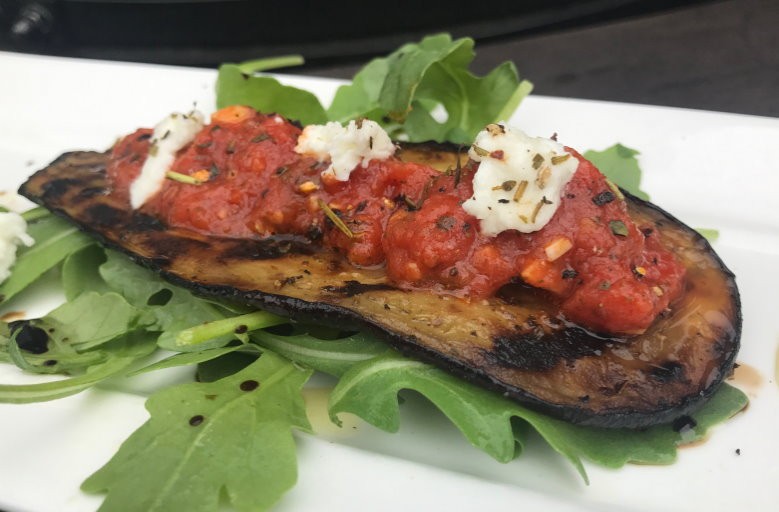 Klik hier voor de printversie van het recept: Gegrilde Auberginesalade