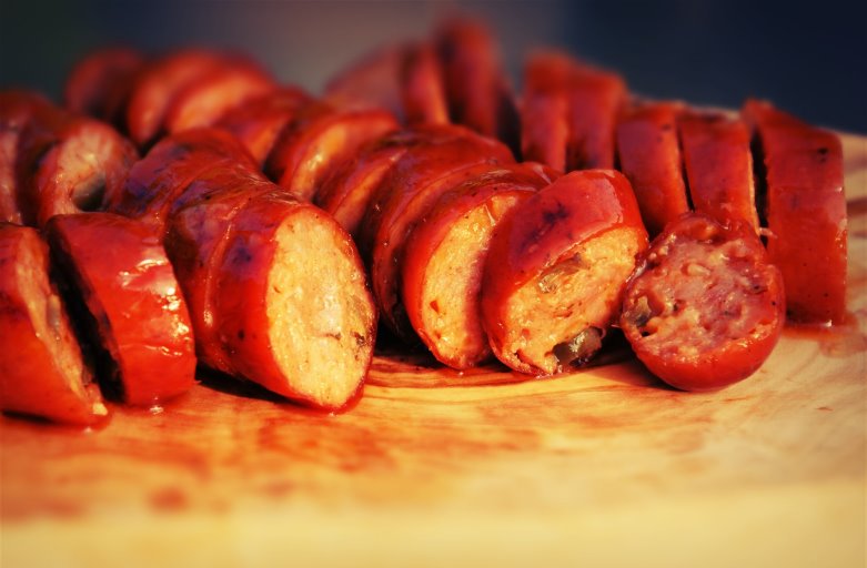 Snij de worsten in dunne plakjes en deel rond, heerlijk zo uit het vuistje.
